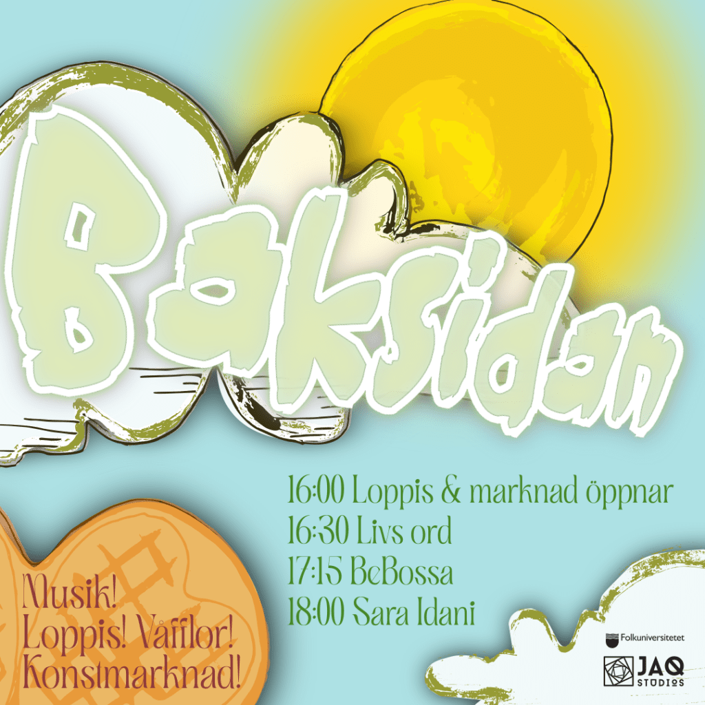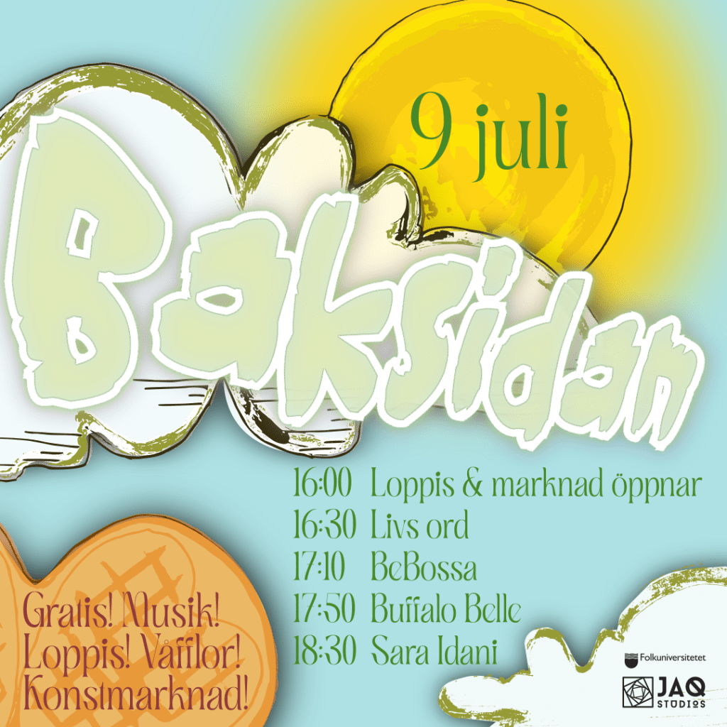 9 juli spelar jag tillsammans med vänner från JAQ studios på vårt lilla sommarfestival Baksidan! Det blir livemusik, loppis, marknad och våfflor! På Folkuniversitetets baksida i Umeå. Nygatan 43.